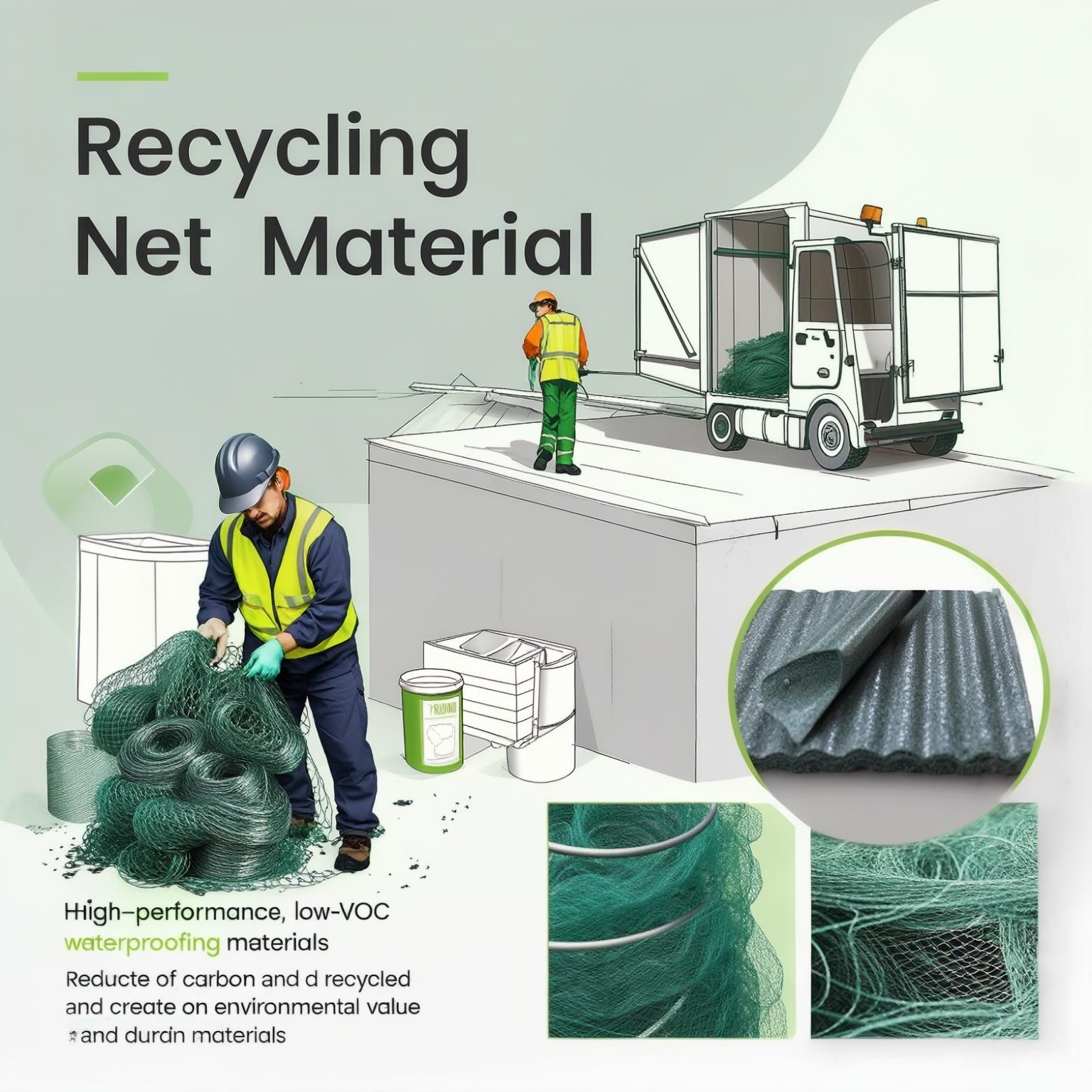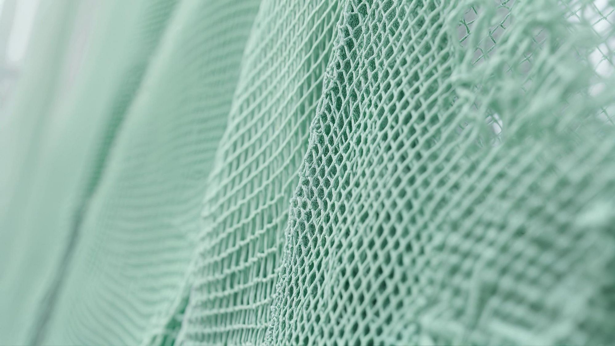 安全網在工地分類,送至GRS認證工廠加工,製成塑膠粒,循環製造新網。自動化技術確保⾼效透明,符合永續發展標準,提升ESG價值。
